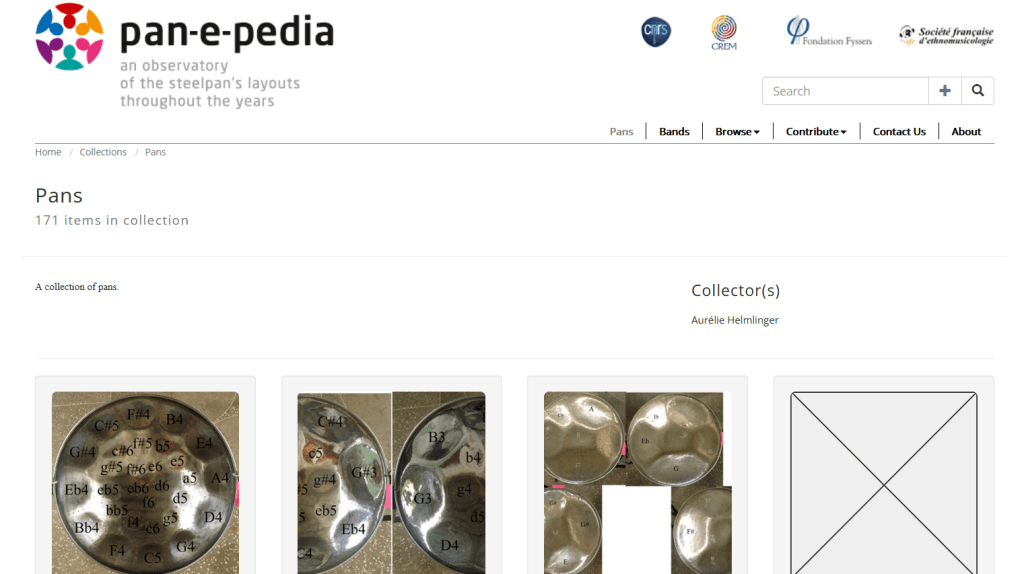 Conçu à la fois comme une plateforme d’archivage, de consultation et comme un outil d’analyse au service d’un projet de recherche sur une évolution organologique, Pan-e-pedia cherche à rendre compte de l’étonnante diversité d’une jeune famille d’instrument : les steelpans.