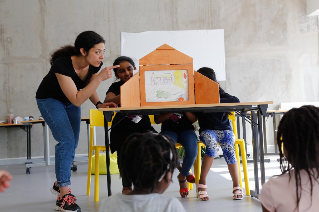 Ensuite, il y a l’expérience de l’atelier avec les enfants. J’aime beaucoup travailler avec des enfants primo-arrivants, car la partie discussion autour des langues est toujours très riche.